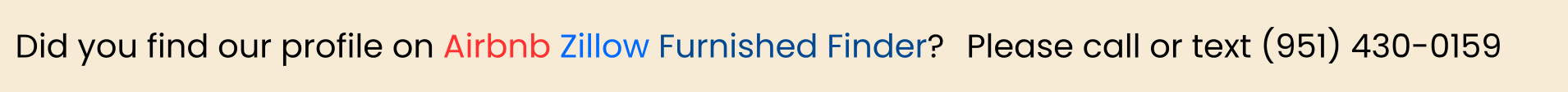 Did you find our profile on Airbnb, Zillow or Furnished Finder? Please call or text at (951) 430-0159
